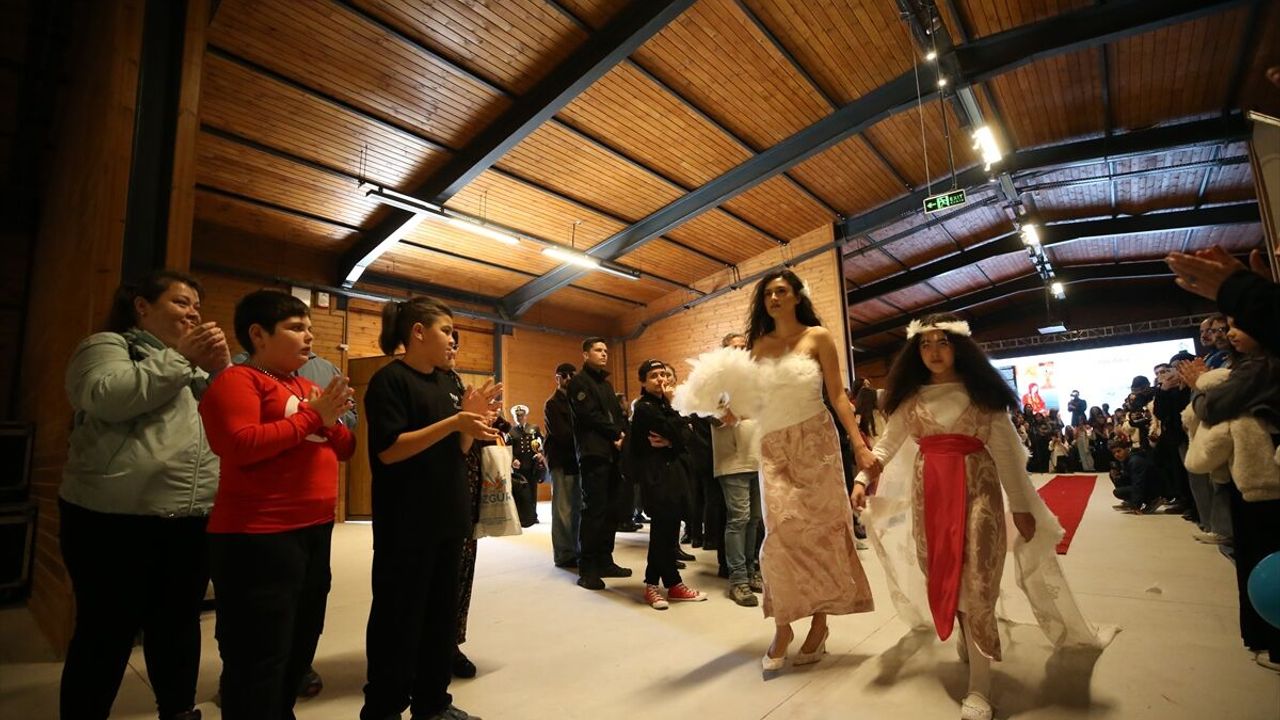 Atık kumaşlardan oluşan defilede, Türk mitolojisinde yer alan kahramanlar simgelendi.