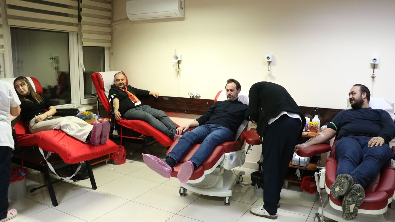 Erciyes Üniversitesi (ERÜ) Hastaneleri Kan Merkezi'ne Kayseri'nin farklı ilçelerinden gelen Galatasaray taraftarı ile eğitimciler ve öğrenciler kanser hastası çocuklar için kan verdi.